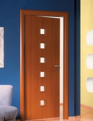 Этот бюджетный класс дверей появился сравнительно недавно и используется в строительстве недорогого жилья. Ламинированные двери производятся на основе деревянного каркаса, заполнены внутри ячеистой картонной сеткой и, как правило, не отличаются затейливым внешним видом. Наружное покрытие изготовлено из листа ДВП, который покрыт сверху меламиновой пленкой. Эти двери характеризуются чрезвычайной легкостью и это, пожалуй из единственное существенное достоинство, если не считать очень низкой стоимости. Однако, они обеспечат нормальную шумоизоляцию и хороший внешний вид. Из недостатков следует отметить слабую стойкость покрытия, которое к тому же, практически невозможно восстановить. Для этих дверей необходима специальная, облегченная фурнитура, которая не оказывает серьезной нагрузки на крепление к дверному полотну. Именно по этой причине они достаточно сложны в установке. Следует остерегаться слишком низкой цены на такую продукцию, поскольку некоторые недобросовестные производители ламинируют поверхность двери бумажной пленкой а каркас изготавливают из древесно — стружечных плит. Такие двери очень недолговечны, а их поверхность не выдерживает и нескольких месяцев эксплуатации. Ламинированные двери прекрасно подойдут, если нужно быстро провести бюджетный ремонт в квартире или офисном помещении.